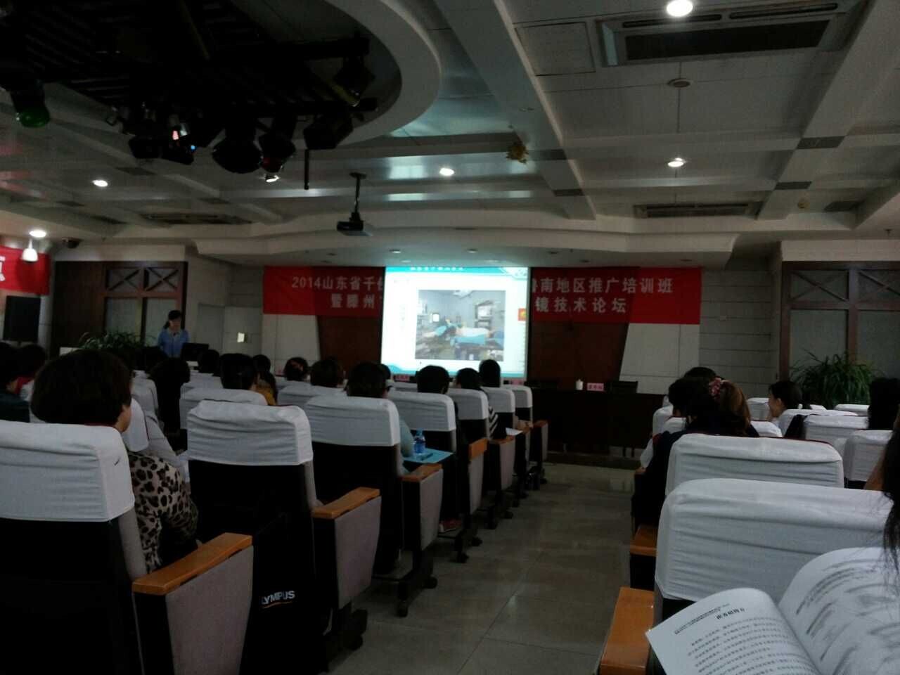 2014年5月10日至5月12日 ,山東省千佛山醫院婦科微創技術魯南地區推廣培訓班暨滕州市中心人民醫院腹腔鏡技術論壇,科美達公司在會議期間就彩色宮腔監測系統的臨床應用方案、臨床價值拓展和與會專家進行了交流討論。專家充分肯定了彩色宮腔監測系統有發展方向,肯定了科美達公司作為專業企業為超聲技術介入婦科臨床所做的貢獻,多位專家表示了與企業進行專業課題研究的合作意向!
