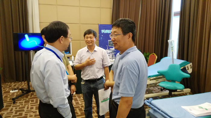 國家衛計委繼教中心楊爰平主任放棄休息,全天參加了學術研討、遠程介入超聲演示觀摩等活動,加深了對超聲新技術的理解,從而更好的領導超聲能力建設項目的實施。晚上楊主任不顧一天的勞頓,在會場召開了部分演講專家的座談會,王金銳、錢林學、劉吉斌、毓星 等多位專家到科美達展位進行參觀,并就超聲在專科領域的信用討論,充分肯定了科美達公司這幾年在專科領域的成就,勉勵科美達保持在婦科超聲領域的研發、臨床優勢,引領中國超聲走出一條新路。